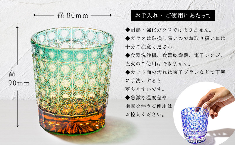 江戸切子 ロックグラス 「漣-sazanami-」 琥珀纏/グリーン 【玻…