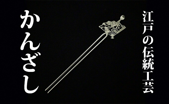 錺簪(かざりかんざし)とは、金属の板や線を糸ノコで切り、ヤスリ掛け、彫り、打ち出し、ロウ付け(溶接)などの、技巧を凝らして作り上げるかんざしのことをさし、使い込むほどに風合いが増していくのが特徴です。 かんざしの歴史的な起源は生命力豊かな自然の草花には悪いものから身を守る力があるとされ、髪に挿したのが始まりでした。 単純に髪を飾るものではなかったかんざしは、時代と共に進化し、日本髪が結われるようになる江戸時代に脚光を浴びるようになり、江戸後期には錺職人衆が腕を競い合うほどの全盛期となりました。 細工のモチーフにされるものは、動植物を中心とする他、歳時記を見立てた粋なもの、吉祥性をもつ意匠など、小さな飾りの中には物語があり。男性から女性への贈り物や、親から子へと代々引き継ぐ宝物として使われるようになりました。 女性の髪を美しく彩ってきたかんざしは日本の文化となり、私、三浦孝之も錺職四代目として、この文化を引き継いで、歌舞伎や日本舞踊などの伝統芸能用のかんざしだけではなく、日常でも使いやすく美しさのあるかんざしも製作しています。 ■扇面菊水文様 菊の花に流水をあしらった文様は延命長寿の意味を持つ「めでたいしるし」とされ、末広がりの扇は「繁栄」を表し、着物の柄にも使われ季節を問わず多用されています。 感性豊かな先人達が生み出したモチーフは、現代へも引き継がれている吉祥文様です。 ※画像はイメージです。 ※写真と製品の色味との差異が生じる場合がございます。 ※製品は一つ一つ手作業により製作しており、素材毎に模様・色等が異なるため個体差がございます。あらかじめご承知おきください。 ※手作りのため、お届けまでに60日程度のお時間をいただいております。 ※ご使用の際には二本脚の根元を持ってお着けください。 ※ご使用後に整髪料が付いた場合は布で拭き取り桐箱に保管してください。 ※簪は銀製品ですがメッキコーティングを施していますので基本的には変色はいたしません。 ※沖縄・離島にはお届けできません。 事業者:かざり工芸三浦