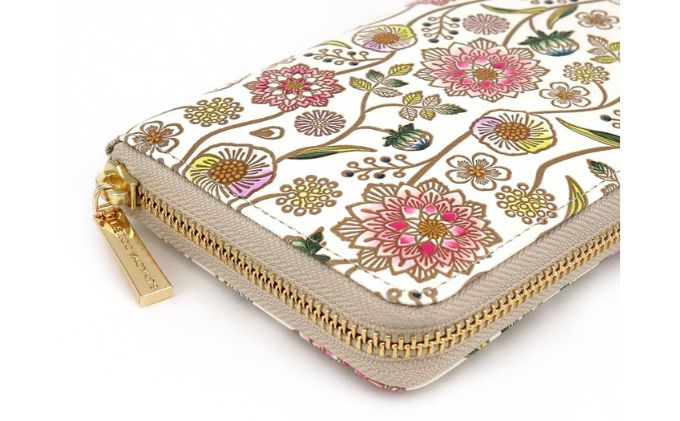 【文庫屋大関】 大容量 ぐるっとファスナーの長財布 金唐小花…