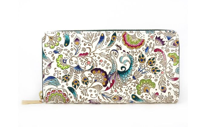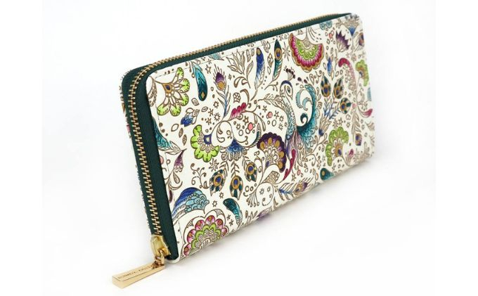 【文庫屋大関】 大容量 ぐるっとファスナーの長財布 孔雀【皮革工芸品】[№5619-0847]