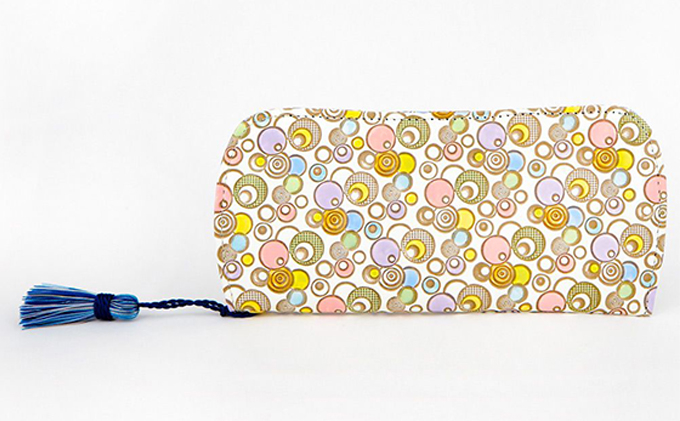 メガネケースと使う時=メガネを持ち歩くとき。それならば、軽いこと、かさ張らないこと、メガネを使っている時には邪魔にならないことが大切。そんなコンセプトで、大人の為のシンプルなメガネケースを作ってみました。やわらかいベルベットのキルティング内装が、ふんわりとメガネを包んで保護します。メガネを取り出す度に注目の的です! 【職人のこだわり】 ★サッと取り出してサッとしまえる、シンプルなつくりが最大のこだわりポイントです。 ★内装色に合わせたタッセルが良いアクセントになっています。 ★色とりどりの花と鳥が沖縄の伝統染物である紅型(びんがた)を彷彿とさせる「花鳥(かちょう)」柄。 創業者の大関卯三郎は、遠い沖縄の地に思いを馳せ、製作をしたのでしょうか。 涼やかな流水モチーフと琉球紅型を融合させた斬新な絵柄をお楽しみください。 ※画像はイメージです。 ※文庫革製品は、一つ一つ手塗り、手作業による製作ですので、個体差がございます。 ※本サイトの写真とは若干の差異生じる場合がございます。あらかじめご了承いただきますようお願いいたします。また、本サイトでご覧いただく色味は、お使いいただいているパソコン環境により若干の差異が生じます。こちらも、ご了承いただきますようお願いいたします。 ※手作りのため、お届けまでに3ヶ月~4ヶ月程度かかります。