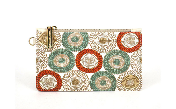 キャッシュレス時代にぴったり!最小限のカード類をすっきりと収納できる、薄くてスマートな小銭入れの進化系、フラグメントケースです。便利な着脱可能リングチェーン付き。 【職人のこだわり】 丸く大胆に塗られた菊が、ぽってりと素朴な可愛さ。雨の日に咲く、傘の花のように、パッとひらいた菊がひしめき合います。よく見ると菊の凸凹の表情が2種類あるのがわかりますか? 傘は「広がる」ことからも「末広がり」の意味を持っています。実は、傘には厄除けの意味もあって、悪い物から自分を守ってくれます。 ※画像はイメージです。 ※文庫革製品は、一つ一つ手塗り、手作業による製作ですので、個体差がございます。 ※本サイトの写真とは若干の差異生じる場合がございます。あらかじめご了承いただきますようお願いいたします。また、本サイトでご覧いただく色味は、お使いいただいているパソコン環境により若干の差異が生じます。こちらも、ご了承いただきますようお願いいたします。 ※手作りのため、お届けまでに3ヶ月~4ヶ月程度かかります。