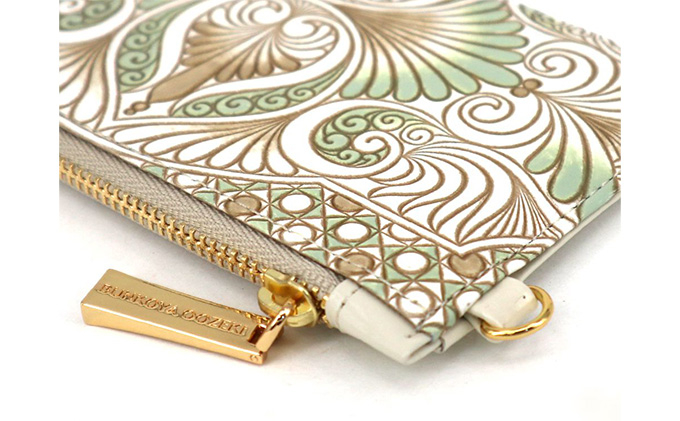 キャッシュレス時代にぴったり!最小限のカード類をすっきりと収納できる、薄くてスマートな小銭入れの進化系、フラグメントケースです。便利な着脱可能リングチェーン付き。 【職人のこだわり】 くるりと丸みのあるラインが特徴のペイズリー柄。 東欧の小さな村に降りそそぐ、光のような優しい色をいっぱいに広げました。植物の生命力をイメージし、ツルや花びらを躍動的にのびのびと表現。蝶々も飛んできて、みんな賑やかにクルクルと踊り出します。小さな村の春風を感じ、ポルカの楽し気な演奏が聞こえてきそうです。 ※画像はイメージです。 ※文庫革製品は、一つ一つ手塗り、手作業による製作ですので、個体差がございます。 ※本サイトの写真とは若干の差異生じる場合がございます。あらかじめご了承いただきますようお願いいたします。また、本サイトでご覧いただく色味は、お使いいただいているパソコン環境により若干の差異が生じます。こちらも、ご了承いただきますようお願いいたします。 ※手作りのため、お届けまでに3ヶ月~4ヶ月程度かかります。