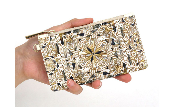 キャッシュレス時代にぴったり!最小限のカード類をすっきりと収納できる、薄くてスマートな小銭入れの進化系、フラグメントケースです。便利な着脱可能リングチェーン付き。 【職人のこだわり】 カローとはフランス語で「タイル」を意味します。 艶やかに彩られたタイル、寺院や舞踏会で人々が集まり、にぎやかに豊かな時間をともにすごす場面をご想像いただきたい柄です。 色は大人を意識したブラック、金色の対比がダークな深みを演出しています。実際のモスクの明るめの色調よりも、落ち着いた色目に仕上げました。 ※画像はイメージです。 ※文庫革製品は、一つ一つ手塗り、手作業による製作ですので、個体差がございます。 ※本サイトの写真とは若干の差異生じる場合がございます。あらかじめご了承いただきますようお願いいたします。また、本サイトでご覧いただく色味は、お使いいただいているパソコン環境により若干の差異が生じます。こちらも、ご了承いただきますようお願いいたします。 ※手作りのため、お届けまでに3ヶ月~4ヶ月程度かかります。