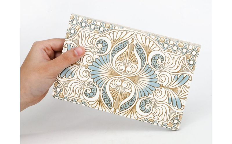 エレガントな3色展開で、アンティーク感漂う落ち着いた色展開。大・小2サイズの版を新たに製作しアイテムの大きさと合ったバランスの柄展開です。