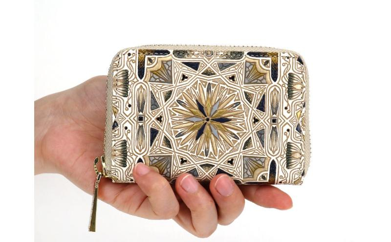 「チャックの小銭入れが好き!」そんな方のためのベーシックなお財布です。内部を3部屋に仕切り、ポケットも2ヵ所つけました。カード入れとしても使えるサイズの、便利な小さいお財布です。 【職人のこだわり】 カローはフランス語で「タイル」のこと。艶やかに彩られたタイル、寺院や舞踏会で人々が集まり豊かな時間をともにすごす場面を想像しながらデザインした柄です。ブラックとブロンズ、金色の対比がダークな深みを演出。実際のモスクの色調よりも落ち着いた色目に仕上げました。 ※画像はイメージです。 ※文庫革製品は一つ一つ手塗り、型押しなど手作業による製作ですので、個体差がございます。本サイトの写真とは若干の差異が生じる場合がございます。 また、本サイトでご覧いただく色味は、パソコン環境により異なる場合があります。合わせてご了承いただきますようお願いいたします。 ※手作りのため、お届けまでに3~4ヶ月程度お日にちをいただく場合がございます。
