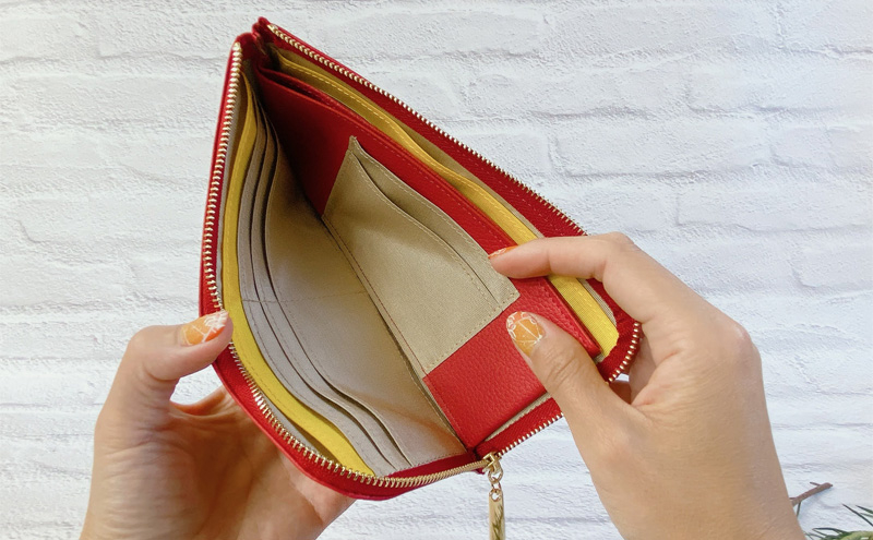 薄マチなのに大容量。バッグのなかでもかさばらないとても使いやすいお財布です。
