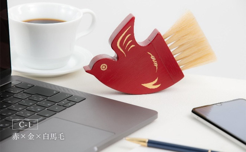 千鳥ブラシ【6種類】ブラシ 卓上ブラシ 千鳥モチーフ 赤 白 黒 馬毛 工芸品 日本製 墨田区 東京 C-5 白×茶×黒馬毛 [№5619-7971]1977