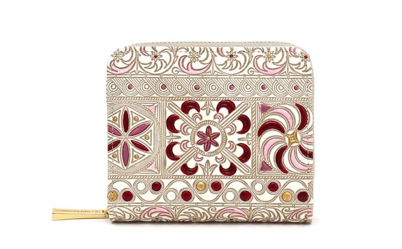【文庫屋大関】二つ折りファスナーミニ財布 錦紗<ピンク>【皮革工芸品】財布 二つ折り 小物 お札 カード 小銭 コンパクト 牛革 手作り 日本製 墨田区 東京都 [№5619-2022]