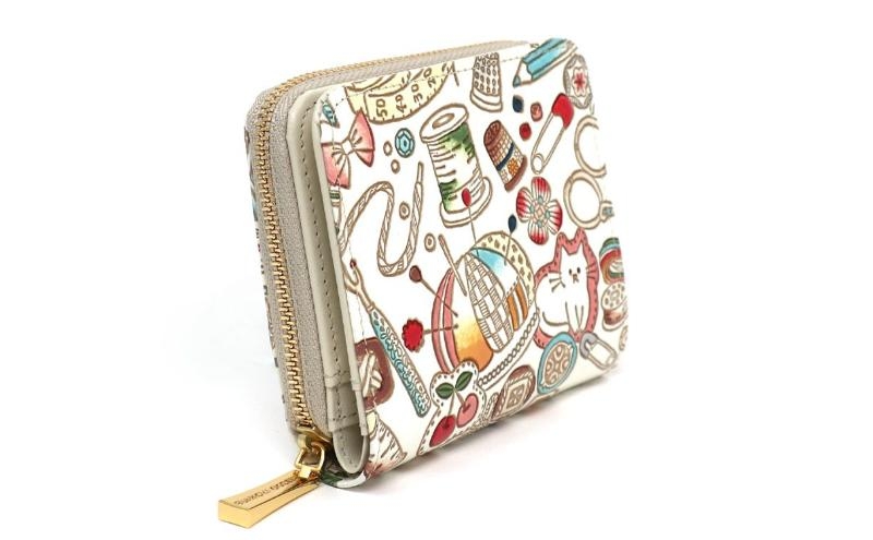 【文庫屋大関】二つ折りファスナーミニ財布 ソーイング【皮革工芸品】財布 二つ折り 小物 お札 カード 小銭 コンパクト 牛革 手作り 日本製 墨田区 東京都 [№5619-2031]