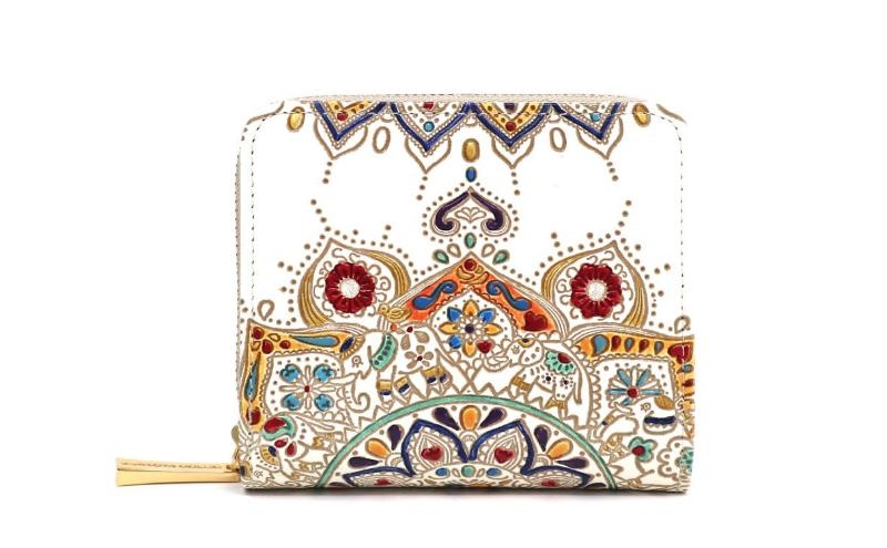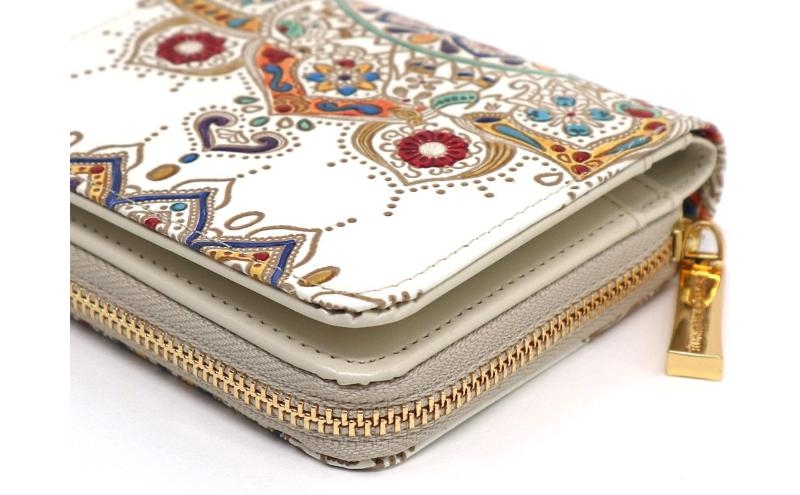 【文庫屋大関】二つ折りファスナーミニ財布 象のカーニバル【皮革工芸品】財布 二つ折り 小物 お札 カード 小銭 コンパクト 牛革 手作り 日本製 墨田区 東京都 [№5619-2063]