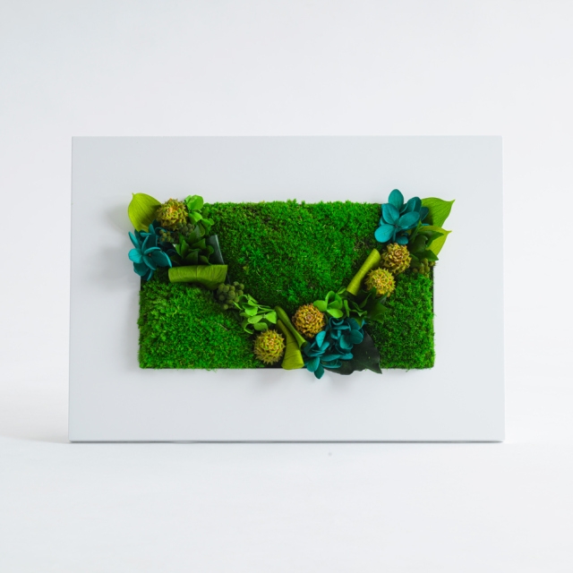 プリザーブド加工によって、自然の風合いを保った苔やリーフを贅沢に使用。
