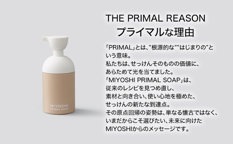 「MIYOSHI PRIMAL SOAP」は、せっけんの潔さに宿る豊かさを、