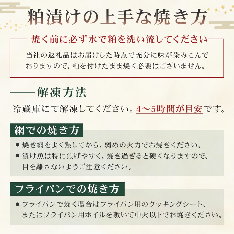 選りすぐりのぎんだらを使用し、代々引き継がれる特製の酒粕にじっくりと漬け込むことで、魚の旨味が一層引き立ちます。