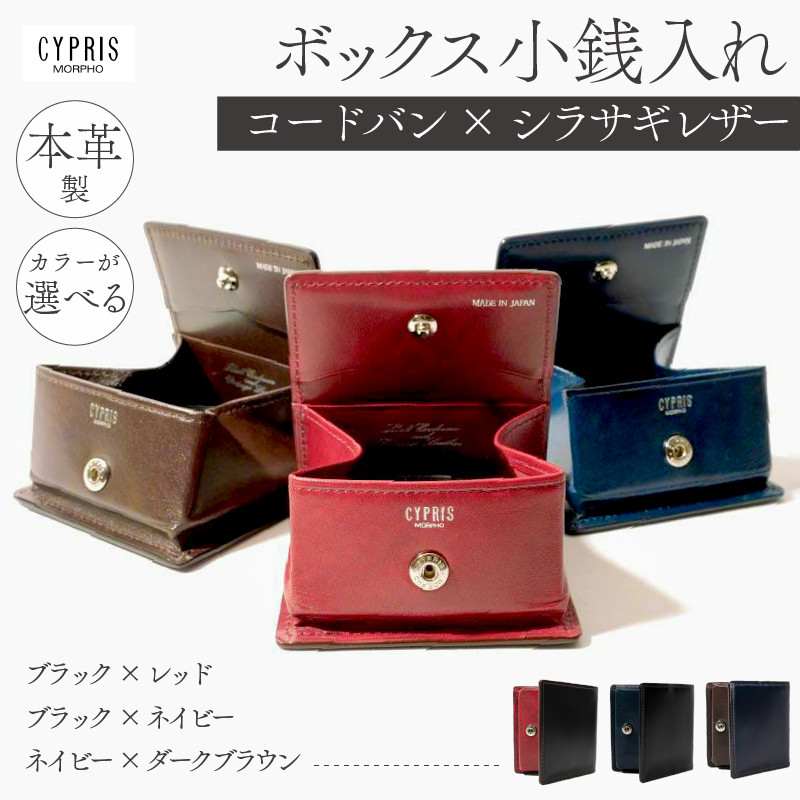 キプリス本革製コードバンxシラサギレザーボックス小銭入れ