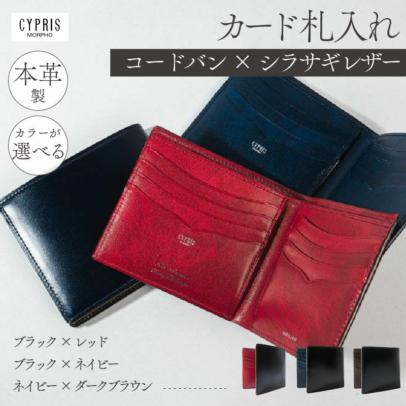 キプリス本革製コードバンxシラサギレザーカード札入れ