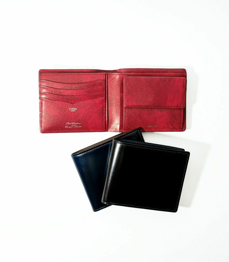 キプリス本革製コードバンxシラサギレザー二つ折り財布