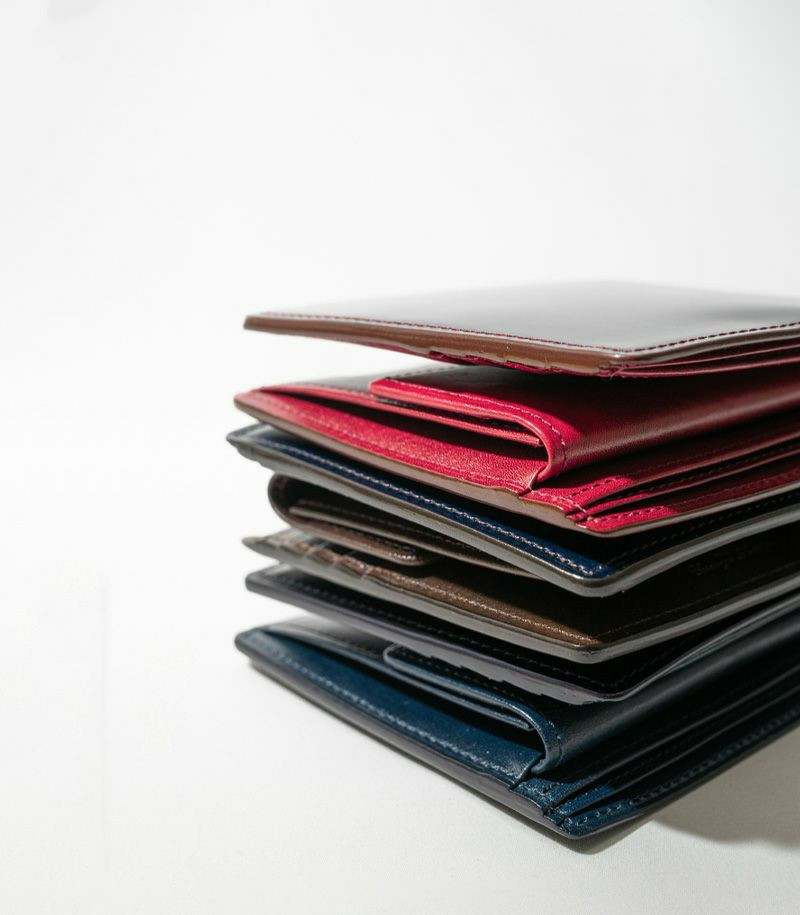 その一級職人の技術を使って、表革には革の宝石と呼ばれるコードバン内革には鮮やかな発色のシラサギレザーを使ったモダンな二つ折り財布です。