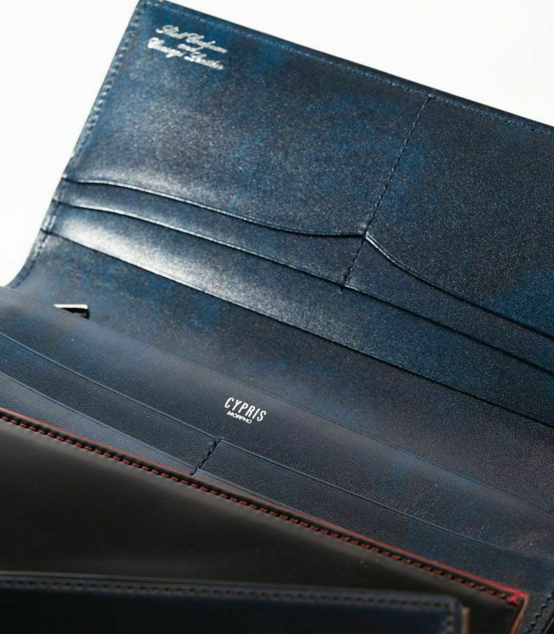 キプリス本革製コードバンxシラサギレザーファスナー付きササマチ長財布