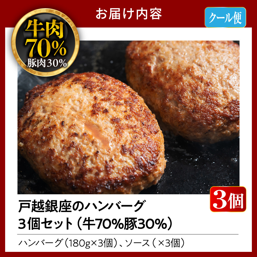 良い肉で作るのが本物!江戸の肉屋の絶品ハンバーグステーキ! 戸越銀座のハンバーグ3個セット (牛70%豚30%)