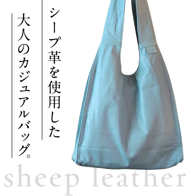 シープ革を使ったショルダーバック、とても軽く持ち易いバック金具を使わずシンプルなデザイン、お洋服にも合わせ易い持ち易いバックです。