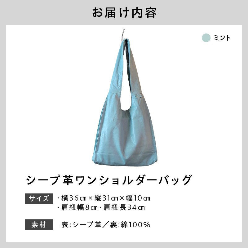 軽く、使う程に艶が出て味のある風合いに変化していきます。 シープ革ワンショルダーバック(D-372)ミント