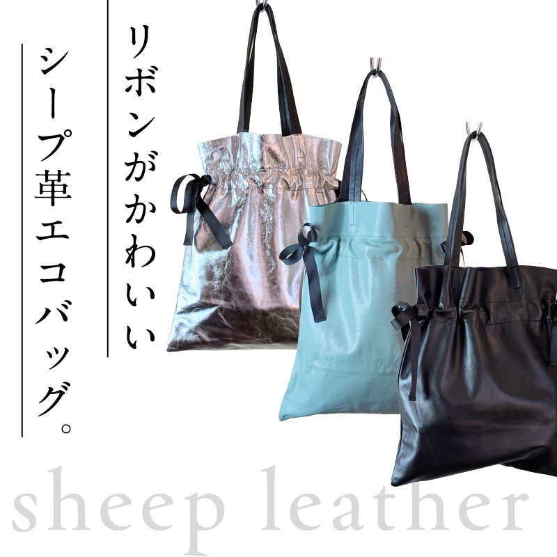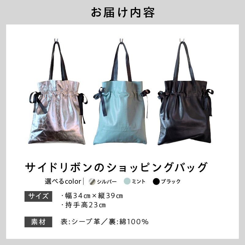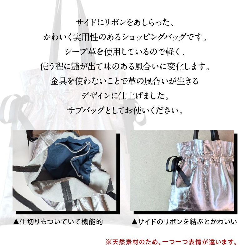 軽く、使う程に艶が出て味のある風合いに変化していきます。 【選べるカラー】ワキにリボンのショッピングバック(D-371)シルバー、ミント、ブラック