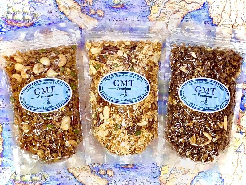 2010 年東京目黒にオープンしたシリアル専門店【GMT】のこだわり3種の詰め合わせ。厳選した材料を丹念に焼き上げた手作りのグラノーラは格別です。