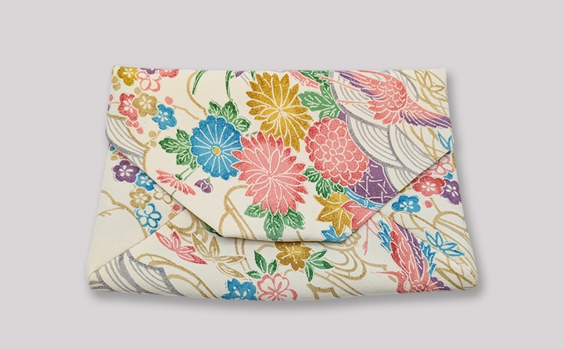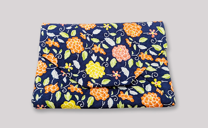 | 容量 | ・内容:数寄屋袋 ・素材:正絹着物地、マグネットなど 御朱印帳袋/正絹着物地、マグネット、和紙など ・サイズ:縦14~15cm×横20~21cm×襠1.4~1.5cm (※リユース生地使用のため多少の誤差があります。) ・数量 1個 |
