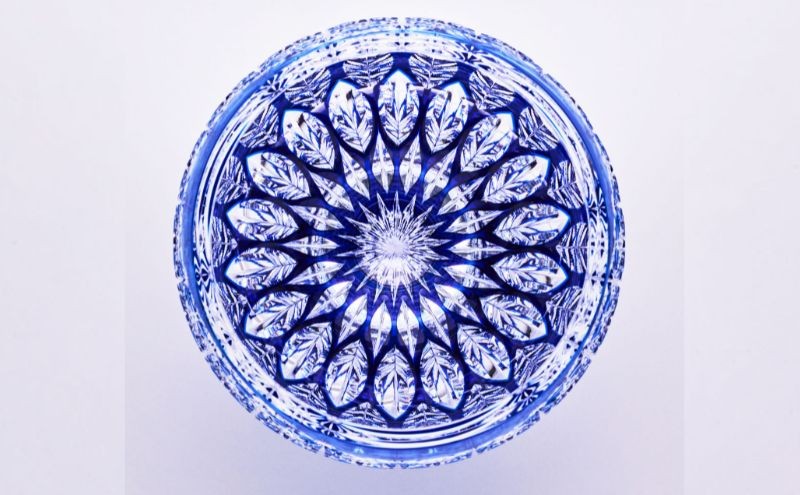 上質なクリスタルガラスの中をのぞくと万華鏡の様に広がる蓮華の華の大輪をデザインし丁寧に仕上げました。クリスタルガラスの魅力である煌めきをお楽しみ下さい。