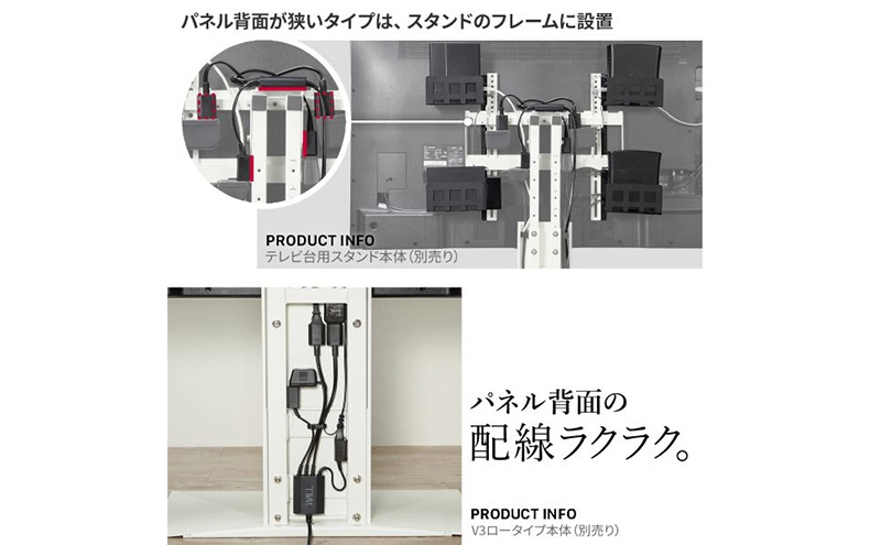 テレビの背面にコードをまとめることができ、足元の配線が最小限にできます。