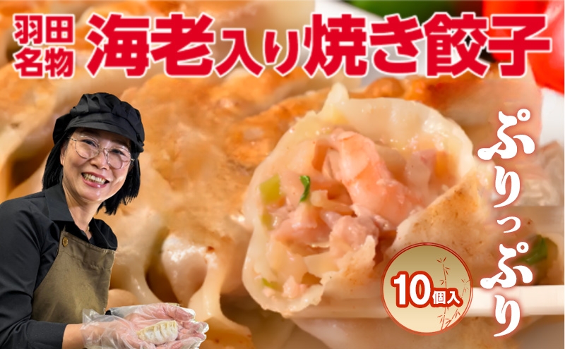 焼き餃子 羽田名物 海老入り焼き餃子 (10個入り)餃子 ぎょうざ ギョウザ 海老 本格餃子 冷凍 おかず 惣菜 中華 手包み 豚バラ肉 11種のスパイス ニンニク不使用 大田区 東京都