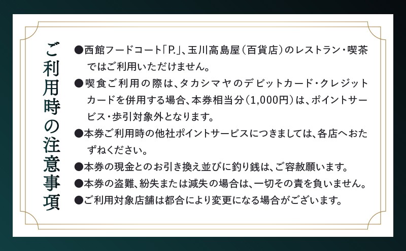 ※喫食ご利用の際は、タカシマヤのデビットカード・クレジットカードを併用する場合、本券相当分(1,000円)は、ポイントサービス・歩引対象外となります。