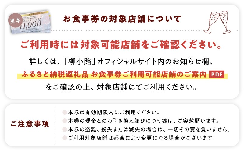 本券は2027年2月28日(日)まで、柳小路のレストラン対象店舗にてご利用いただけます。