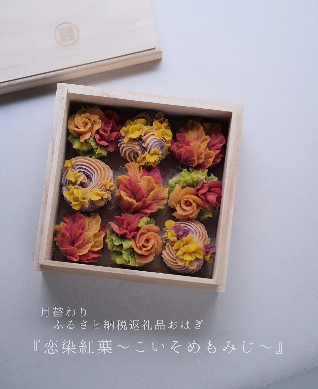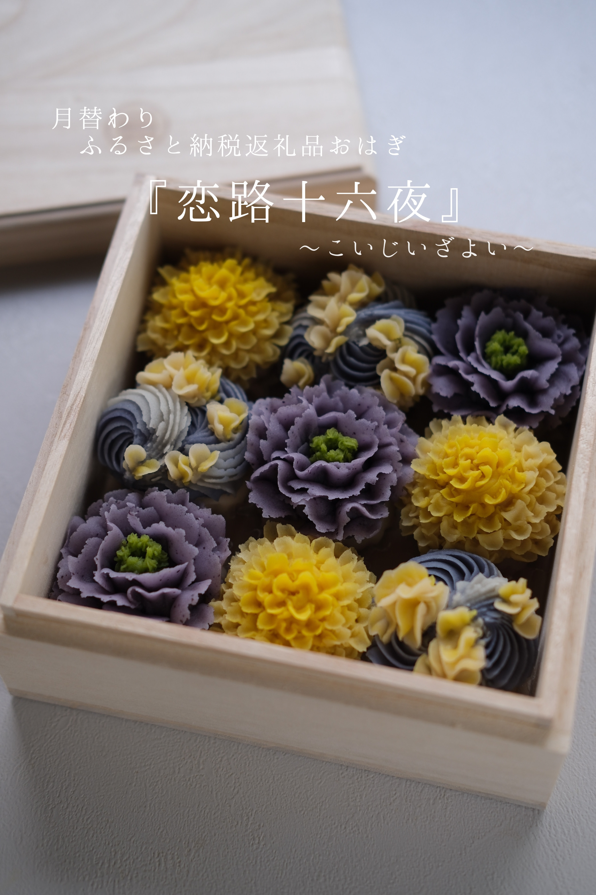 毎月変わる伝統の『和の誕生色』をイメージしたおはぎのフラワーボックス。 【タケノとおはぎ】 ≪世田谷本店へご来店ください≫ 世田谷区ふるさと納税限定おはぎ【令和7年12月お引渡し分】オーダーメイドおはぎ「春まど」9個セット