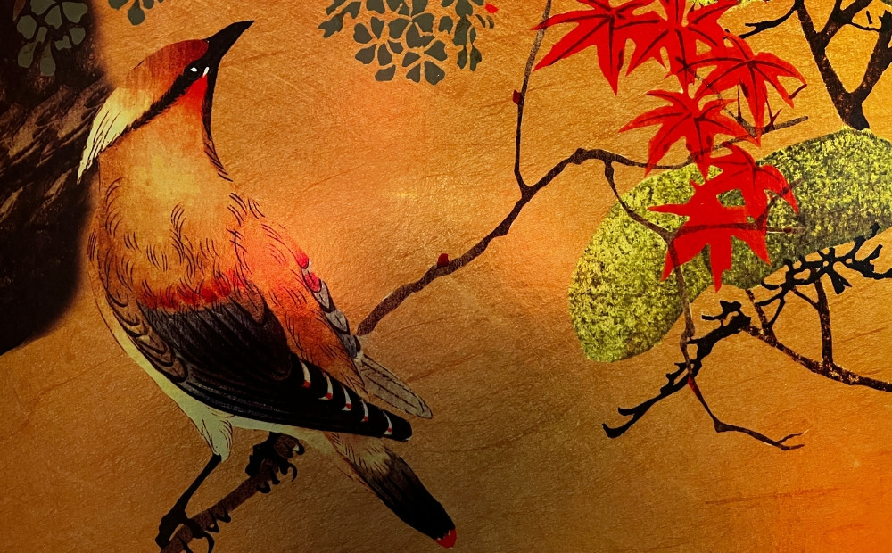 圧倒的にインパクトのある、今や日本人が忘れかけている日本のわびさびの概念を採り入れた金屏風さながらの作品!