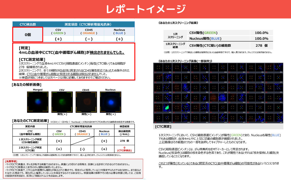 一方で、CTCの検出のみで現在のがん罹患を確定することはできません。必要に応じて医師に相談し、他検査を併せて評価することをおすすめいたします。