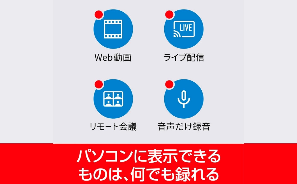 ポイント1:範囲を指定して、録画ボタンを押すだけの2ステップで録画できます。バックグラウンドでの録画にも対応しているので、他の作業をしながらでも、寝ている間にも録画できます。