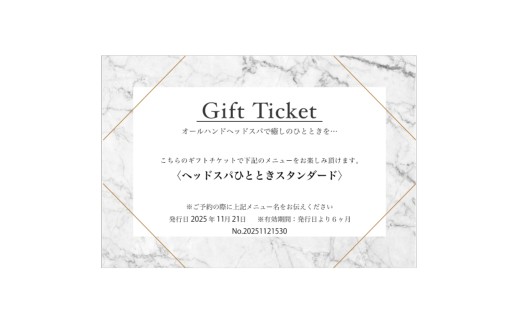 NEW ヘッドスパひとときスタンダード ギフトチケット 【ヘッドスパ…