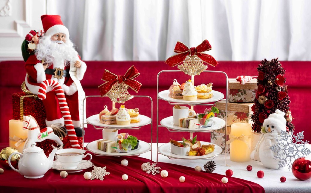 スタンド上段にはスイーツが、下段にはオードブルや軽食が配され、優雅なティータイムを彩ります。