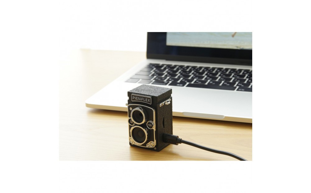 クラシックな二眼レフの形をしたトイデジタルカメラ。写真だけでなく、音声付きの動画、音声のみも録れます。