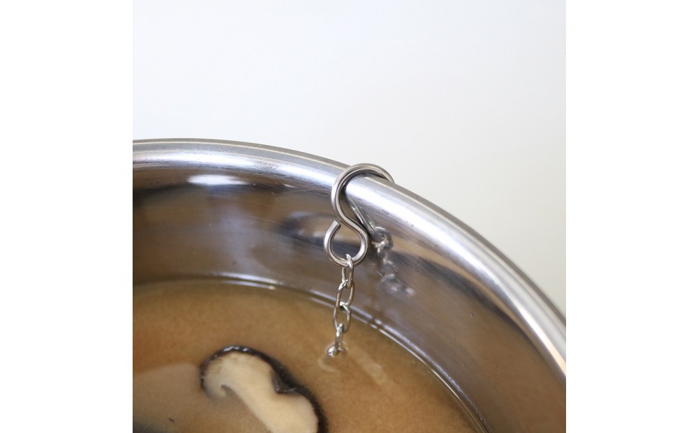 「煮込んだ後、取り出しにくいのでは?」そんな心配もご無用です。このリーフ型鉄玉には、フックとチェーンが付属しています。お鍋やケトルのフチに引っ掛けておけば、調理後にサッと取り出せて衛生的。使い終わった後のお手入れも簡単で、清潔に長くお使いいただけます。