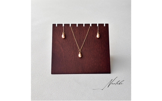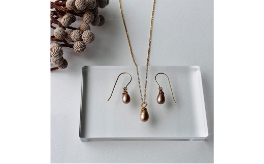 ほんのりと優しい光をまとった、天然のブランゴールドカラーのパールを使用したネックレスとピアスのセットです。