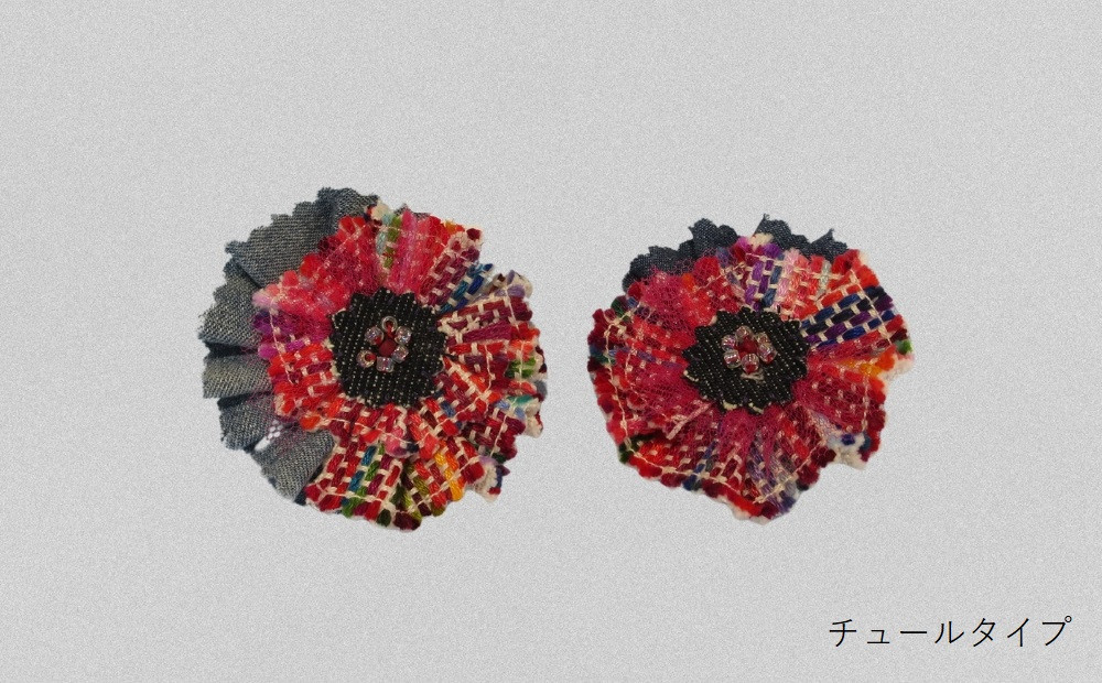 刺繍・飾りにこだわったハンドメイドブローチ 【障がい者施設作業所 ボンエルフ】オリジナル「ブローチ」全2種類(スワロ/チュール)【030-004】