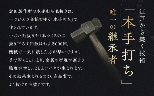 代々続く毛抜き製作の技術を三代目倉田義之が受け継ぎ、こだわりぬいて作った逸品です。