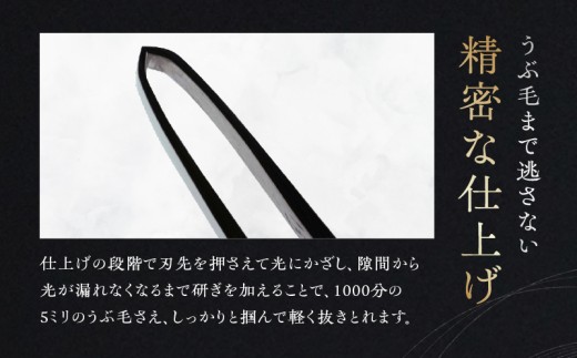 ※当返礼品は、区域内において、毛抜きの製造の工程を行うことにより、相応の付加価値が生じているため、平成31年総務省告示第179号第5条第3号を満たしており、地場産品基準に適合しています。