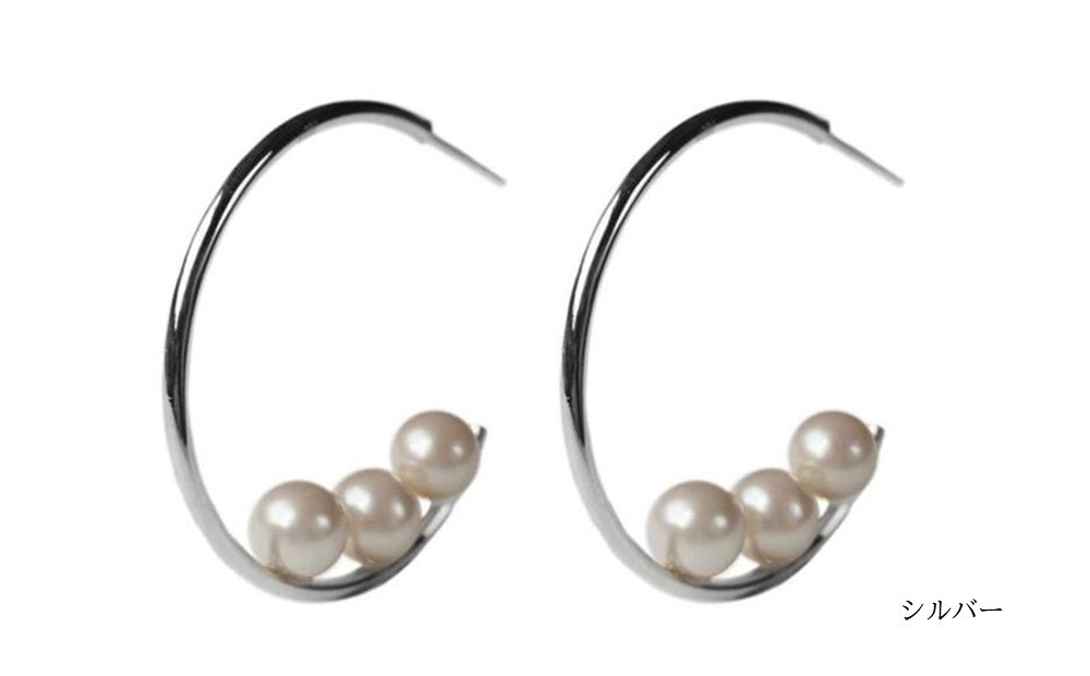 トレンド感あふれるフープパールピアス 3パールのフープステンレスピアス(カラー:シルバー)【043-022-2】ピアス アクセサリー ジュエリー K18GP カジュアル オフィス ギフト プレゼント ラッピング