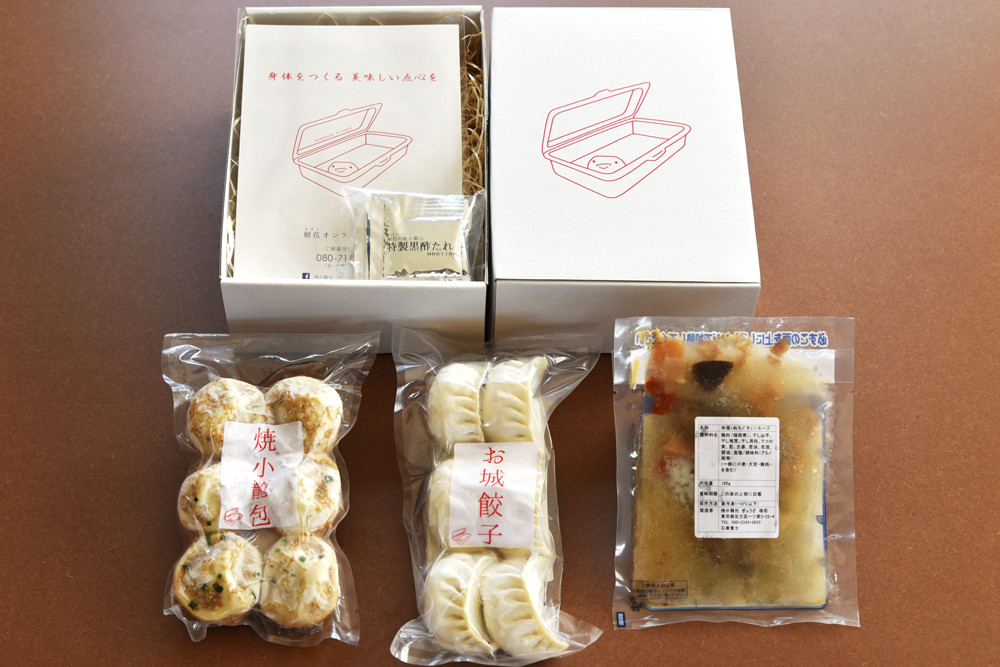 看板商品の焼小籠包に加えて、沢山の取材もしていただいている手延べ皮の「お城餃子」と、英気を養うスープ、命薬(ぬちぐすい)スープが一緒になった特別なセットです。
