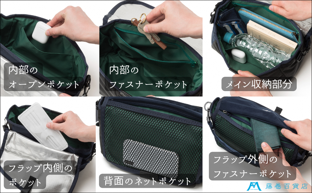 この2WAYボディバッグは、色づかいや飛行機のモチーフなどブランドの特徴を押さえつつ、6つの異素材をミックスさせる手法をカタチにした藤巻百貨店別注モデルです。