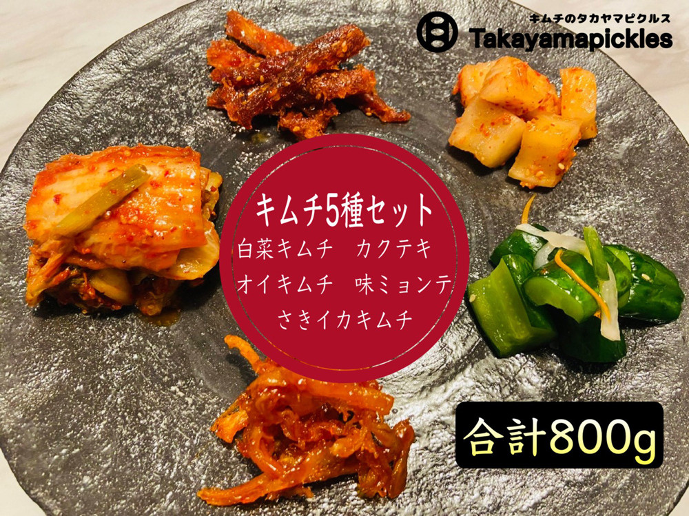 自家製 キムチ 5種セット【白菜キムチ、オイキムチ、カクテキ、さきいかキムチ、味ミョンテ(さきタラの甘辛和え)】[0485]